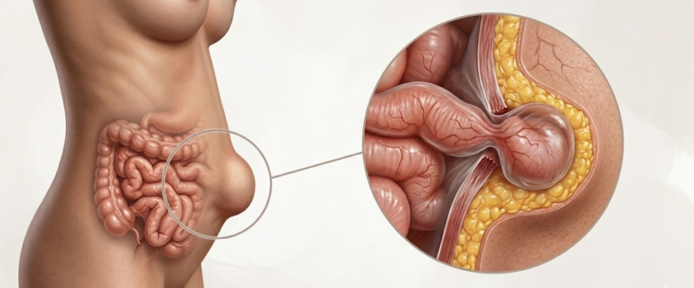 Un piccolo rigonfiamento sull’addome o nella zona dell’inguine che compare durante uno sforzo, quando si tossisce o alla fine della giornata può essere il primo segnale
